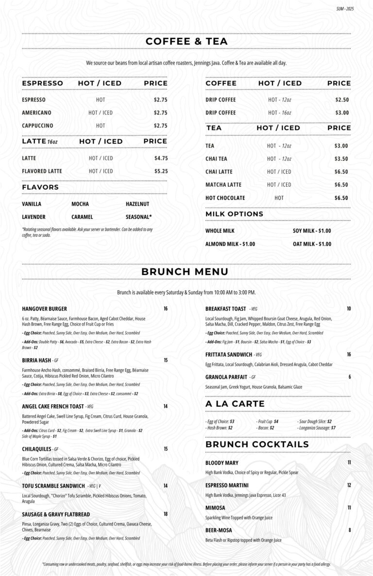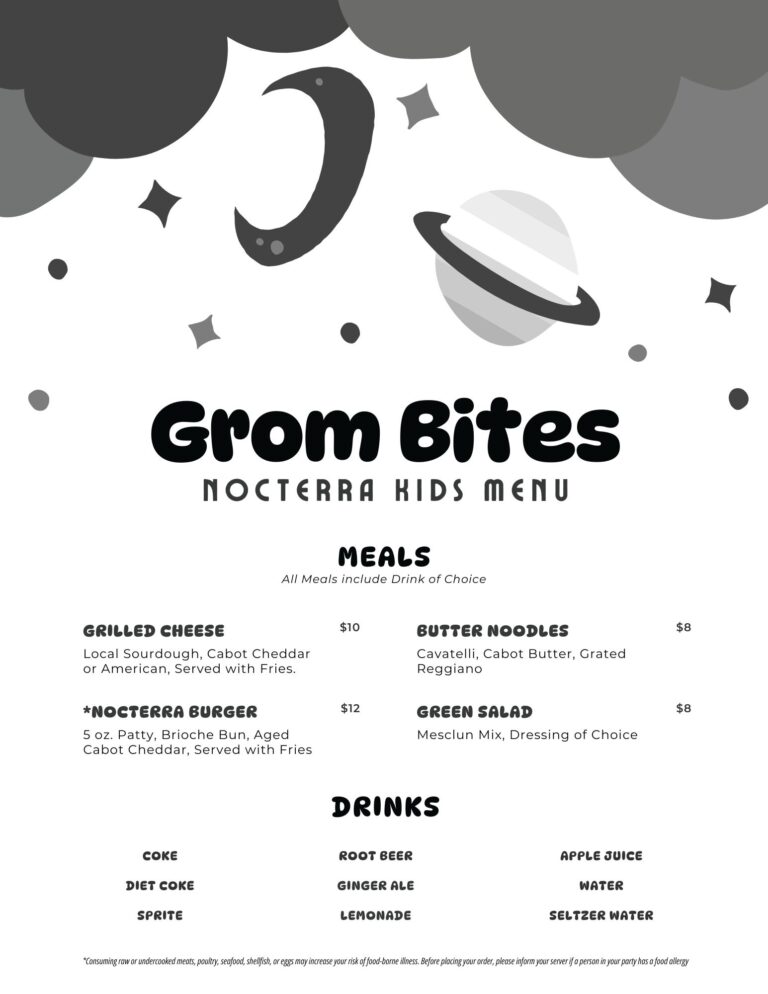 *Consuming raw or undercooked meats, poultry, seafood, shellfish, or eggs may increase your risk of food-borne illness. Before placing your order, please inform your server if a person in your party has a food allergy