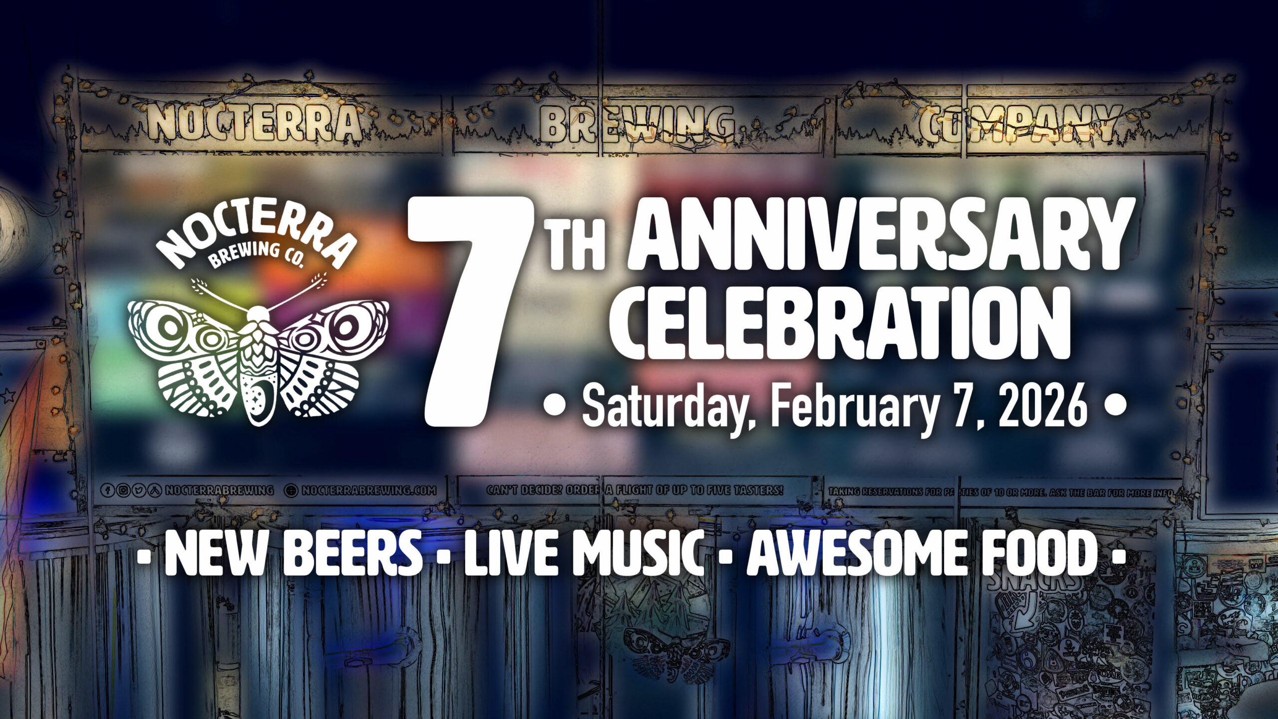 NOCTERRA BREWING CO. 7th ANNIVERSARY! – POWELL & AUDUBON Feb 7 NOCTERRA BREWING CO. 7th ANNIVERSARY! – POWELL & AUDUBON 12:00 pm - 10:00 pm
